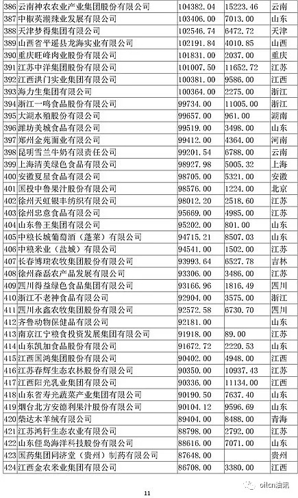 本次入围门槛为6.7亿元,多家主营油脂业务的企业上榜,山东、江苏两省入围油企数量最多。