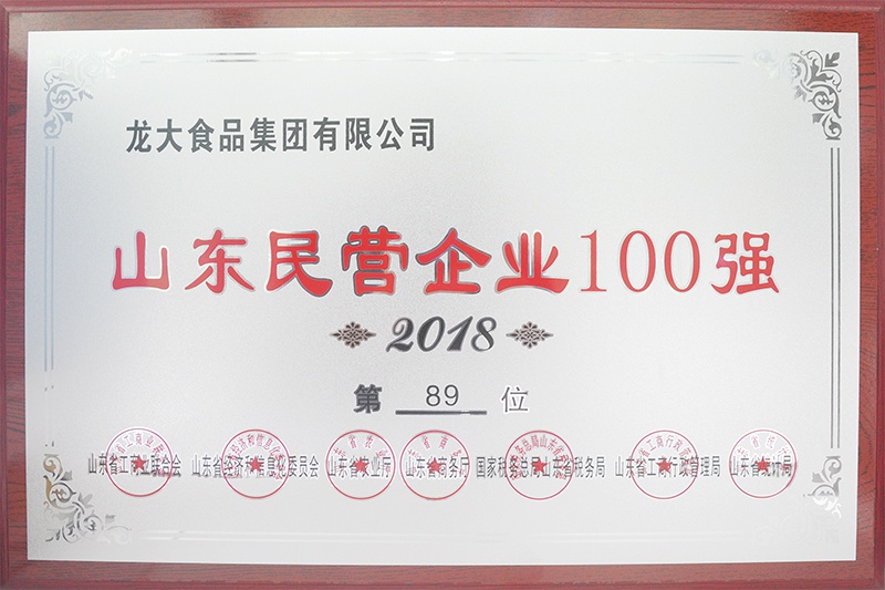 近日,由山东省工商业联合会、山东省经济和信息化委员会、山东省农业厅、山东省商务厅、国家税务总局山东省税务局 、山东省工商局、山东省统计局联合主办的2018年山东省民营企业100强发布会在东营召开,会上发布了本年度山东省民营企业100强榜单,龙大食品集团有限公司光...